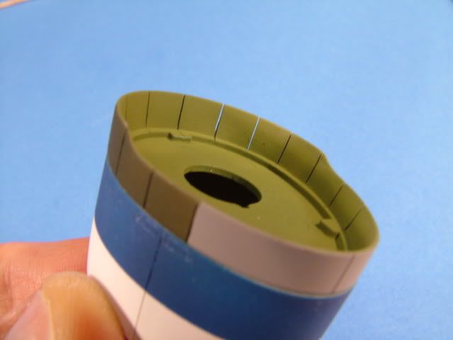 Masked off the "White Bands" by evenly spacing the Tamiya Tape and removing the "Black Field".